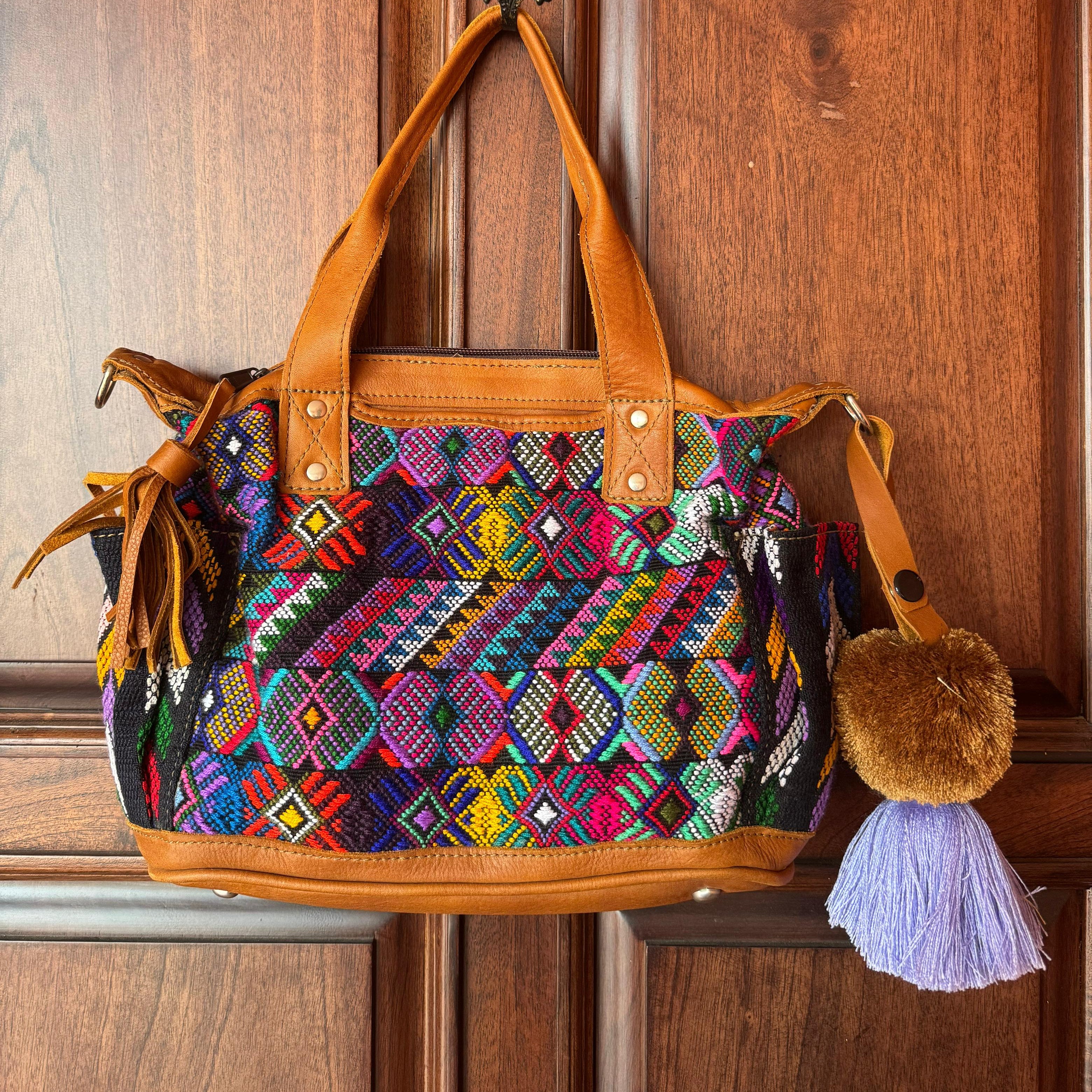 Crafted with premium leather and upcycled huipil textiles sourced from traditional Guatemalan garments.