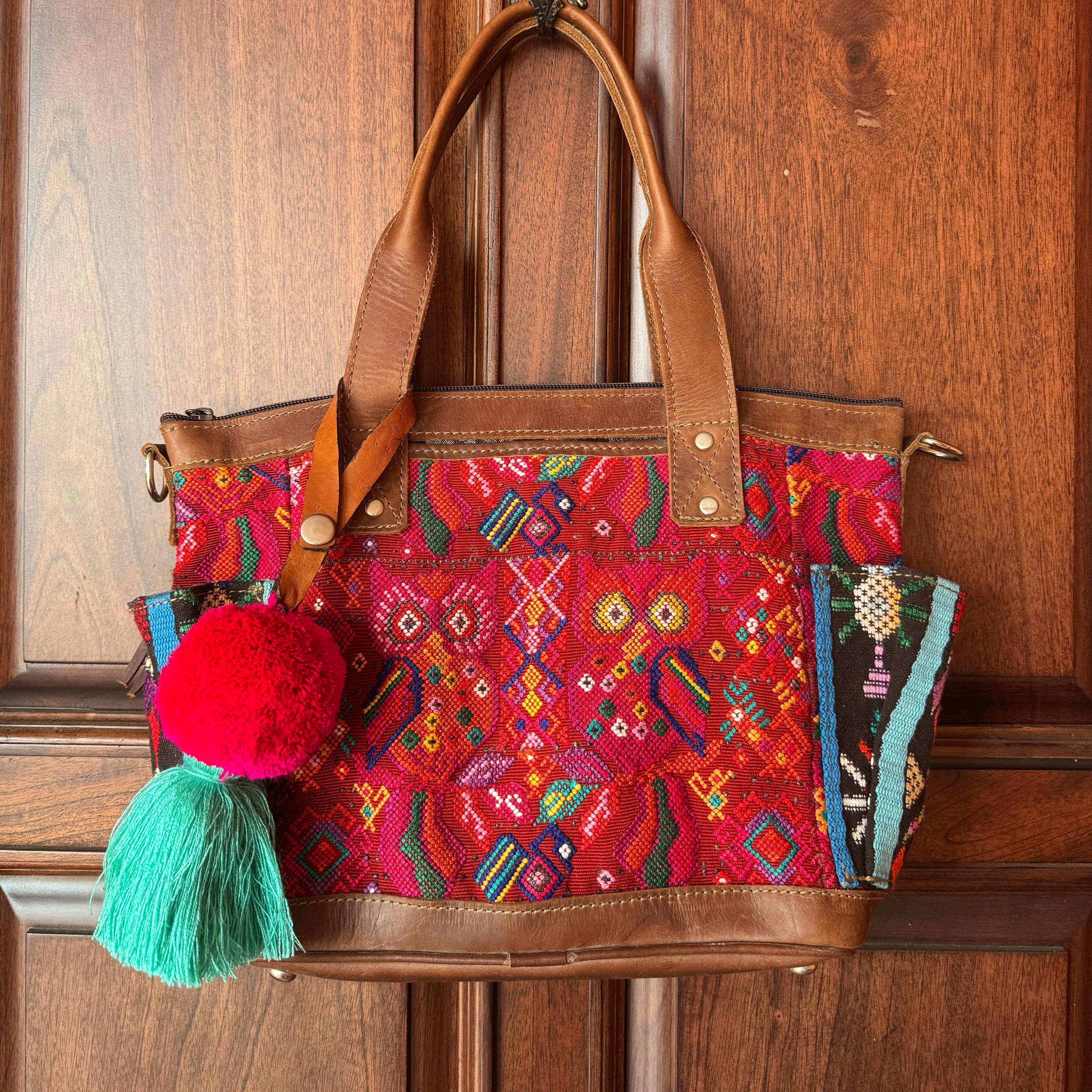 Crafted with premium leather and upcycled huipil textiles sourced from traditional Guatemalan garments.