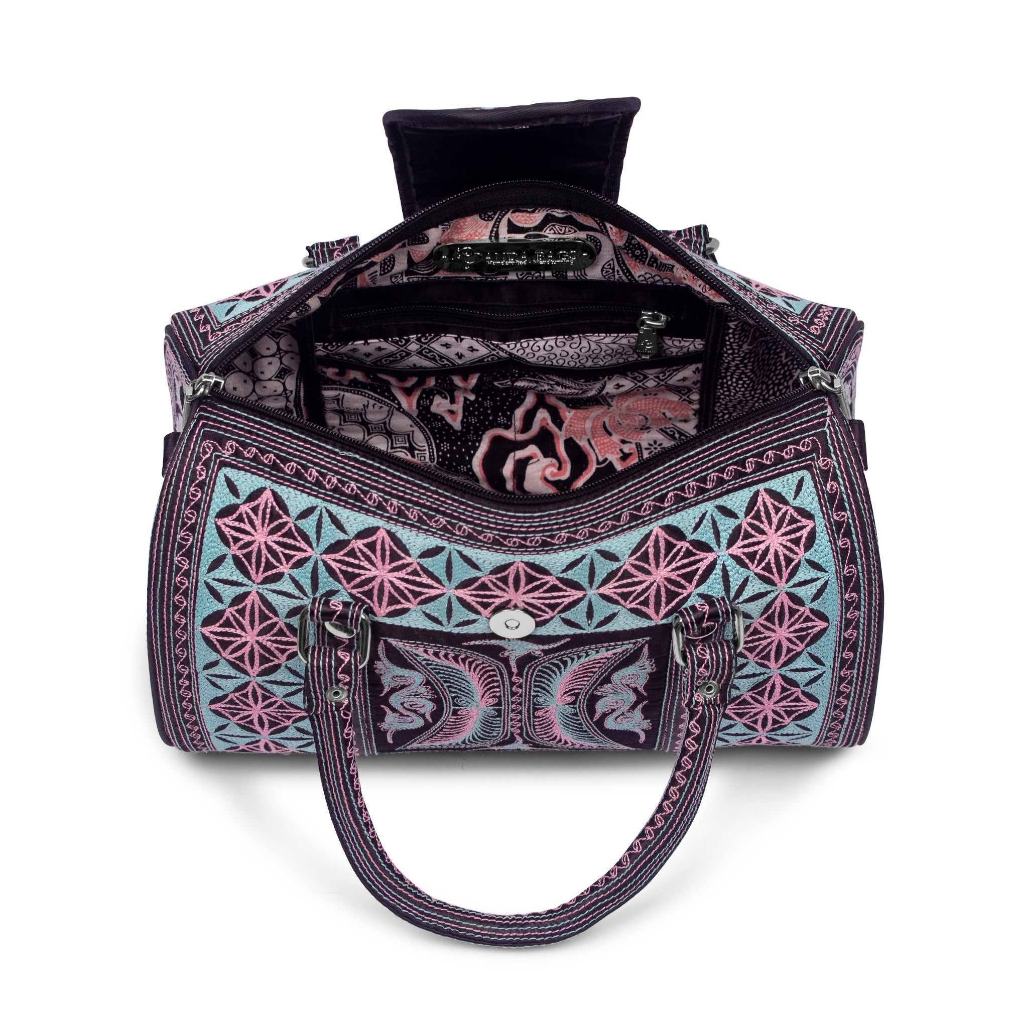 Each piece features intricate embroidery inspired by traditional Indonesian motifs, lovingly stitched by our women artisans in Sumatra. With its generous size and signature silhouette, this bag brings both function and beauty into your everyday rituals.