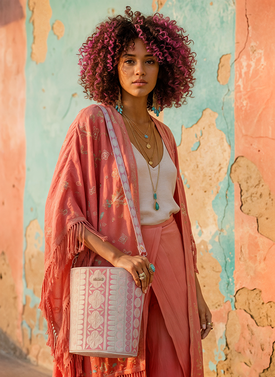 The intricate embroidery, featuring traditional Indonesian designs lends to its beauty. The Bucket Bag is 100% cruelty-free. Whether you are vegan or looking for ethical and artisanal-made, it is a top choice for the conscious consumer.