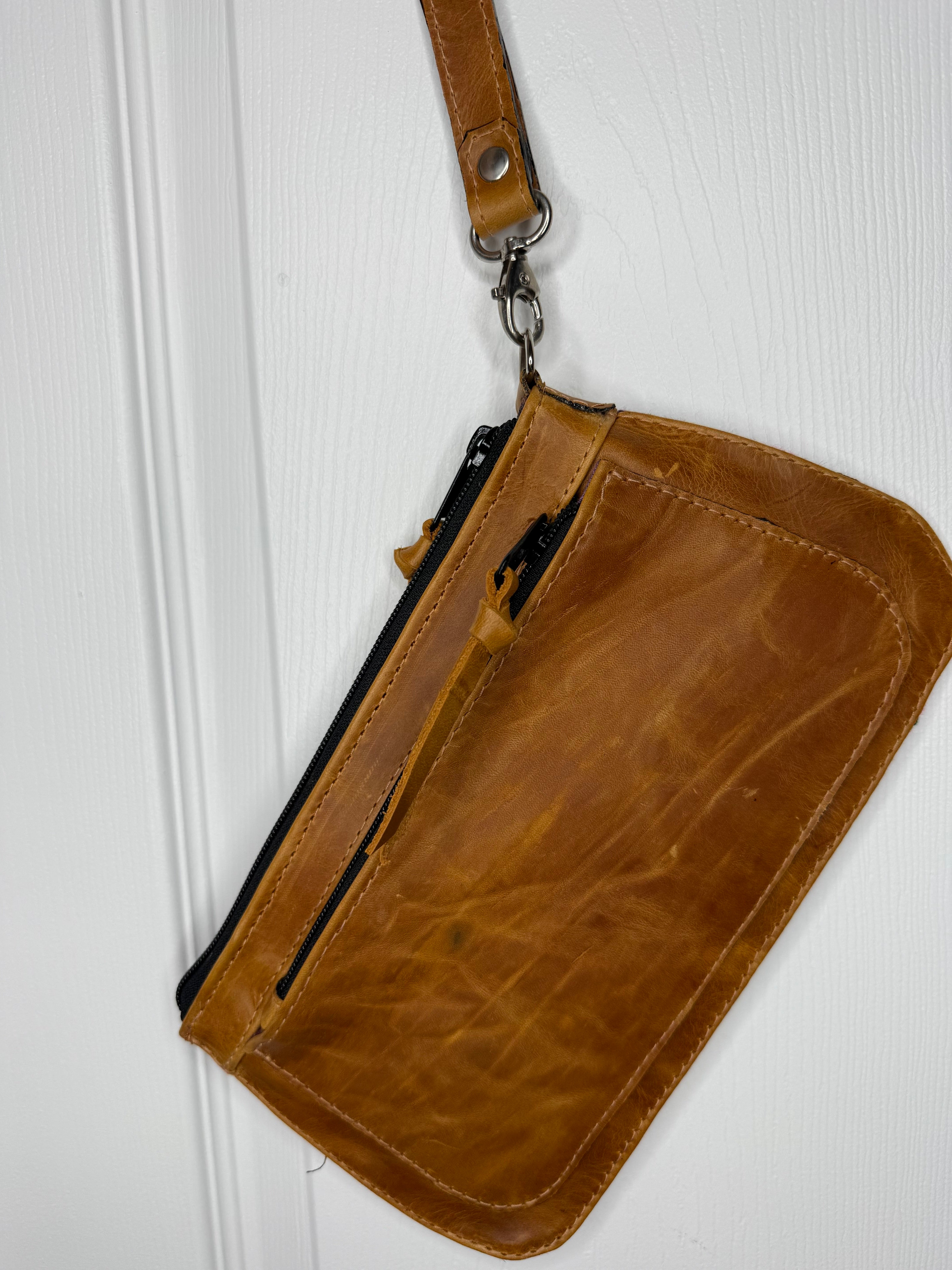 Designed with a slim, elongated silhouette, this clutch is lightweight yet functional, perfect for carrying daily essentials or using as an organizer inside a larger bag. The top zipper closure keeps belongings secure, while the detachable leather wrist strap allows for easy, hands-free carry when you are on the go.