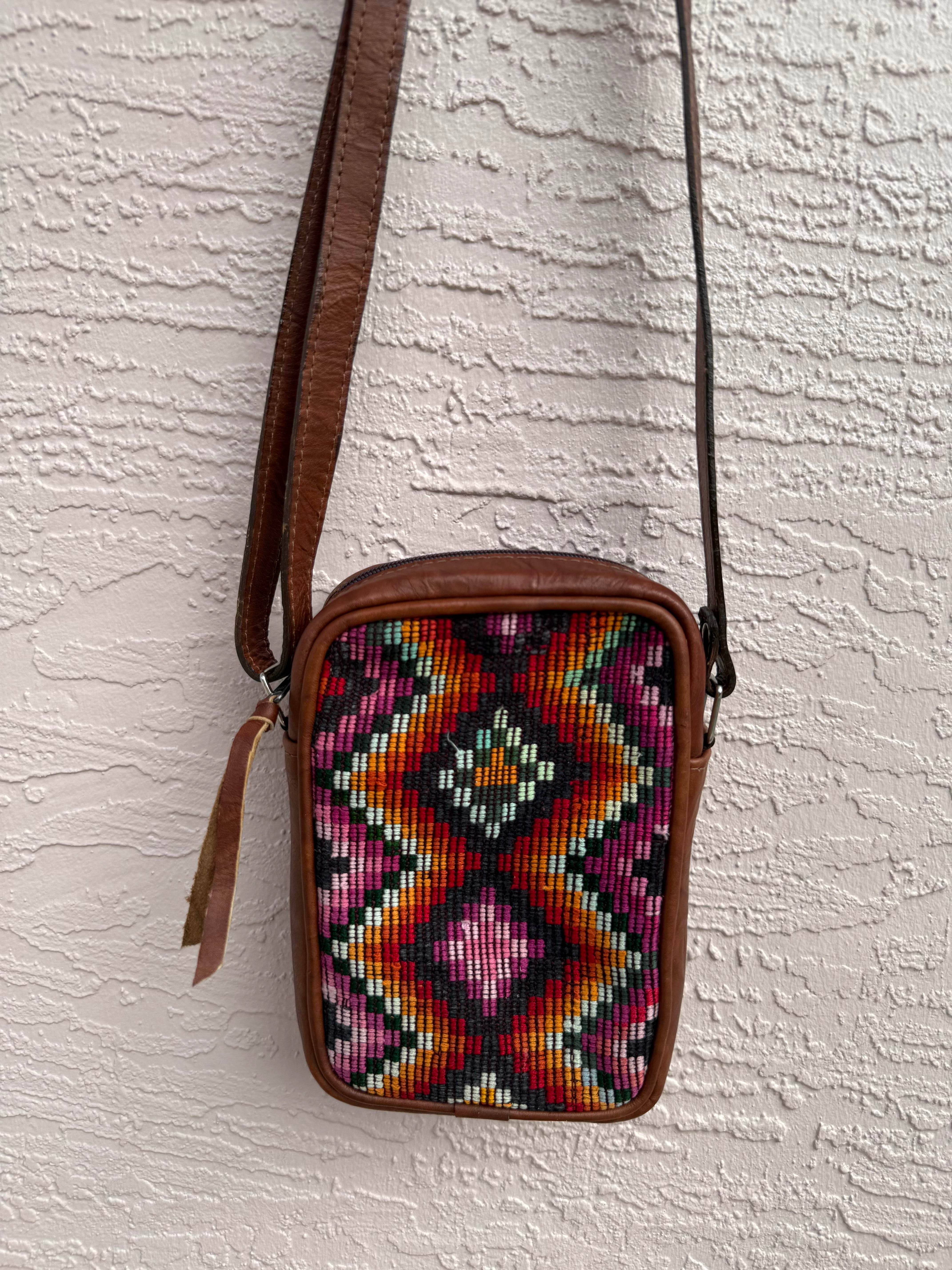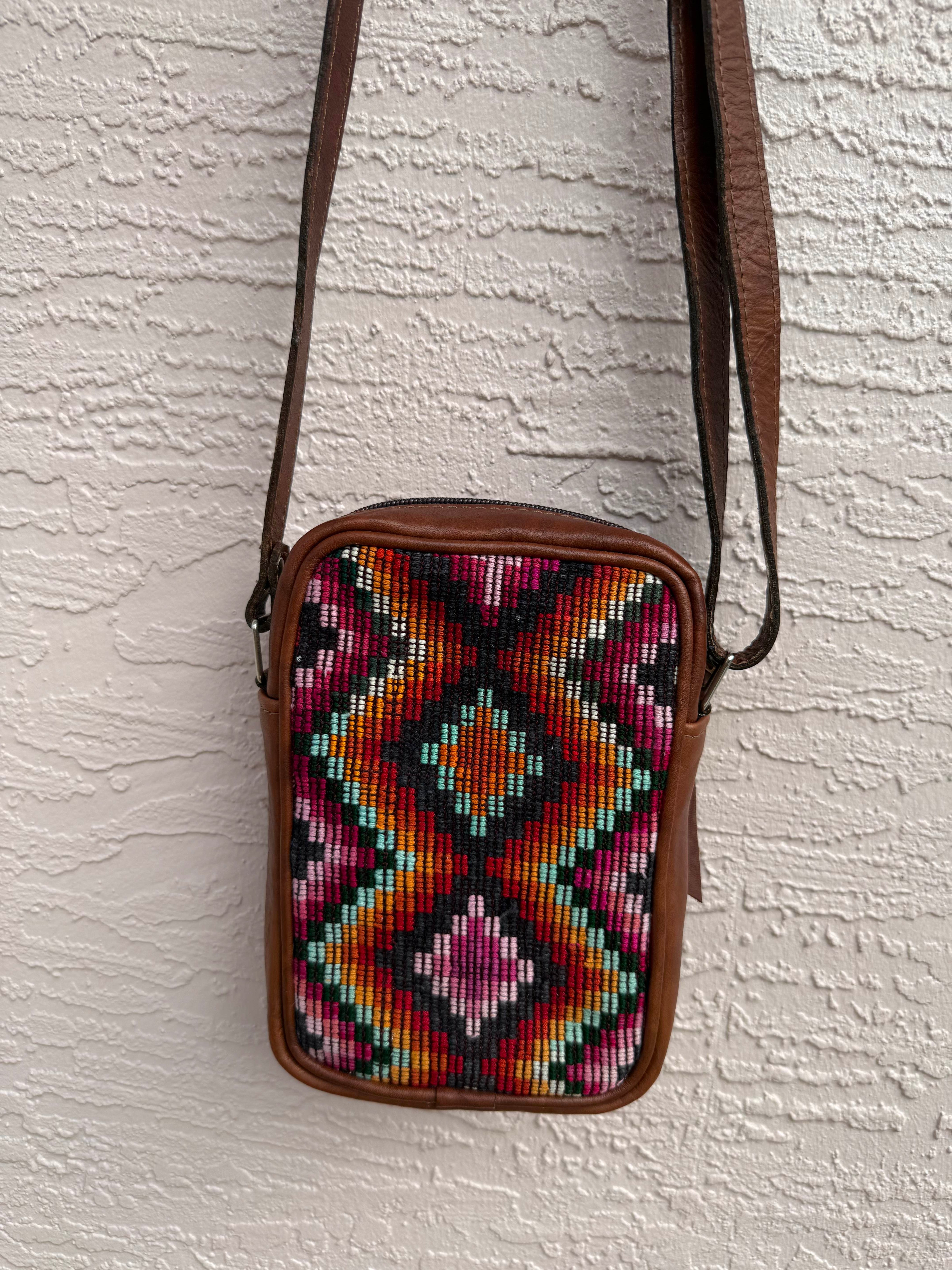 This one-of-a-kind adjustable crossbody is handcrafted in Guatemala by skilled artisans, blending buttery-soft leather with authentic upcycled huipil textiles. Each huipil is vintage and traditional, making every bag completely unique and impossible to replicate.