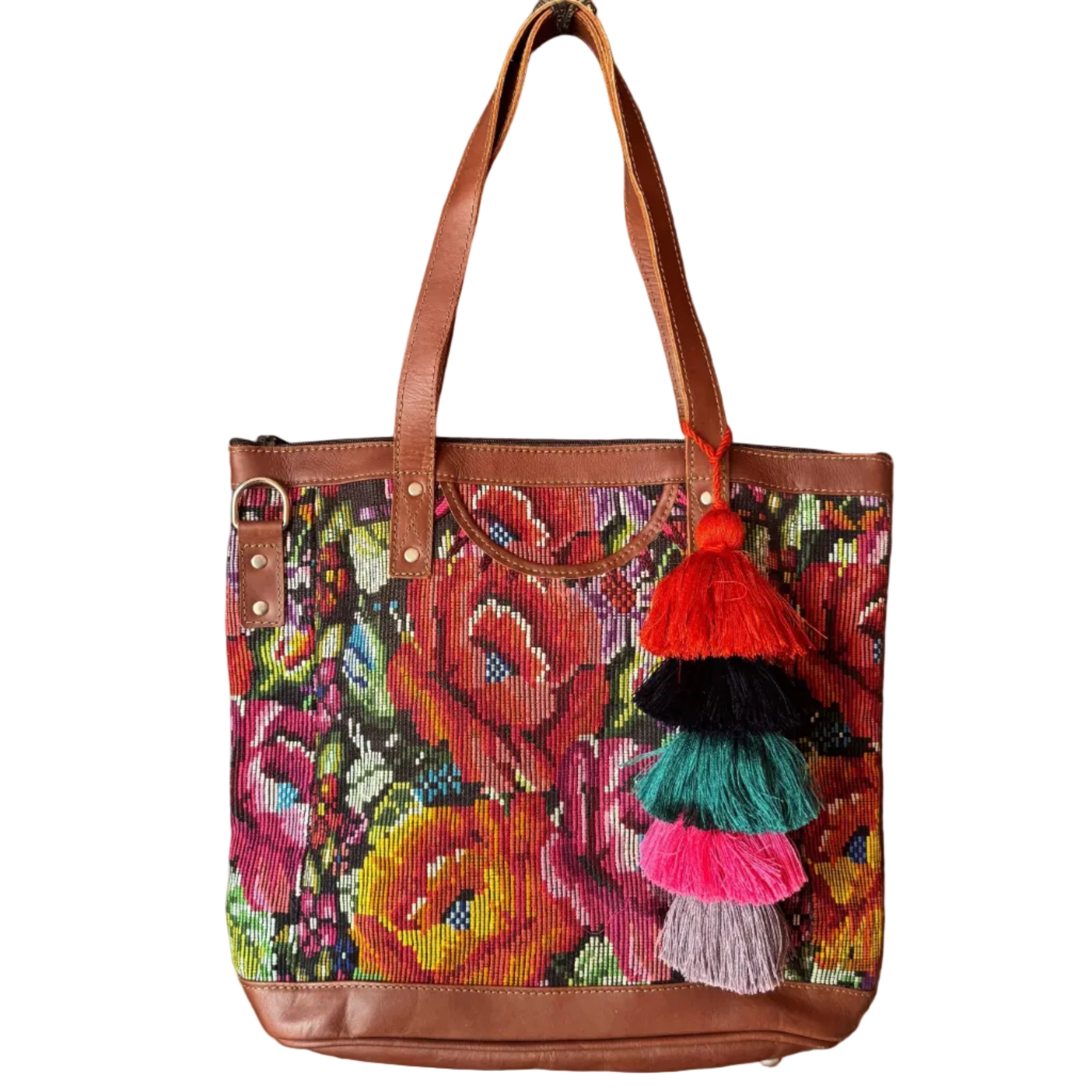 • Premium leather and upcycled huipil textile