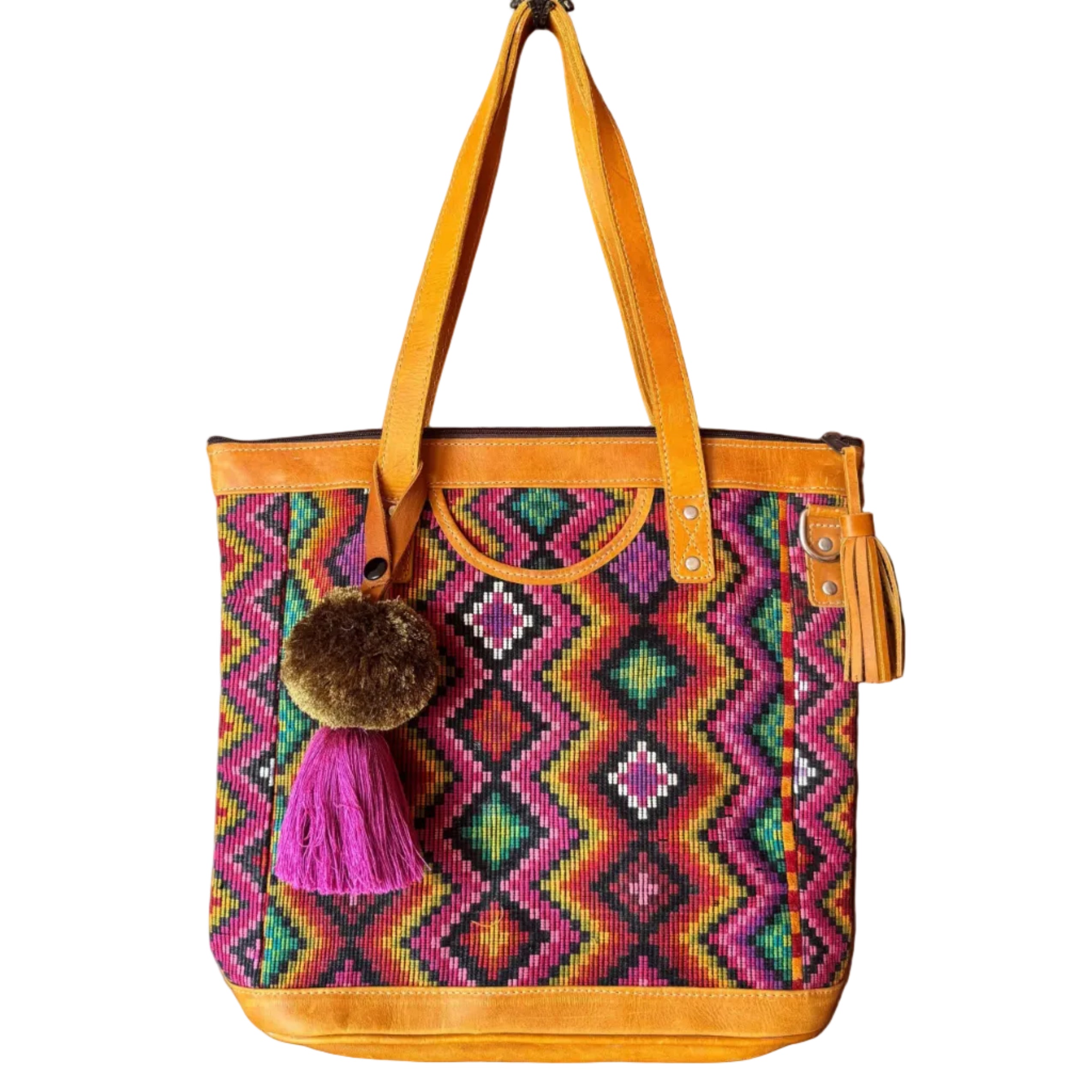 Crafted with premium leather and upcycled huipil textiles sourced from traditional Guatemalan garments.