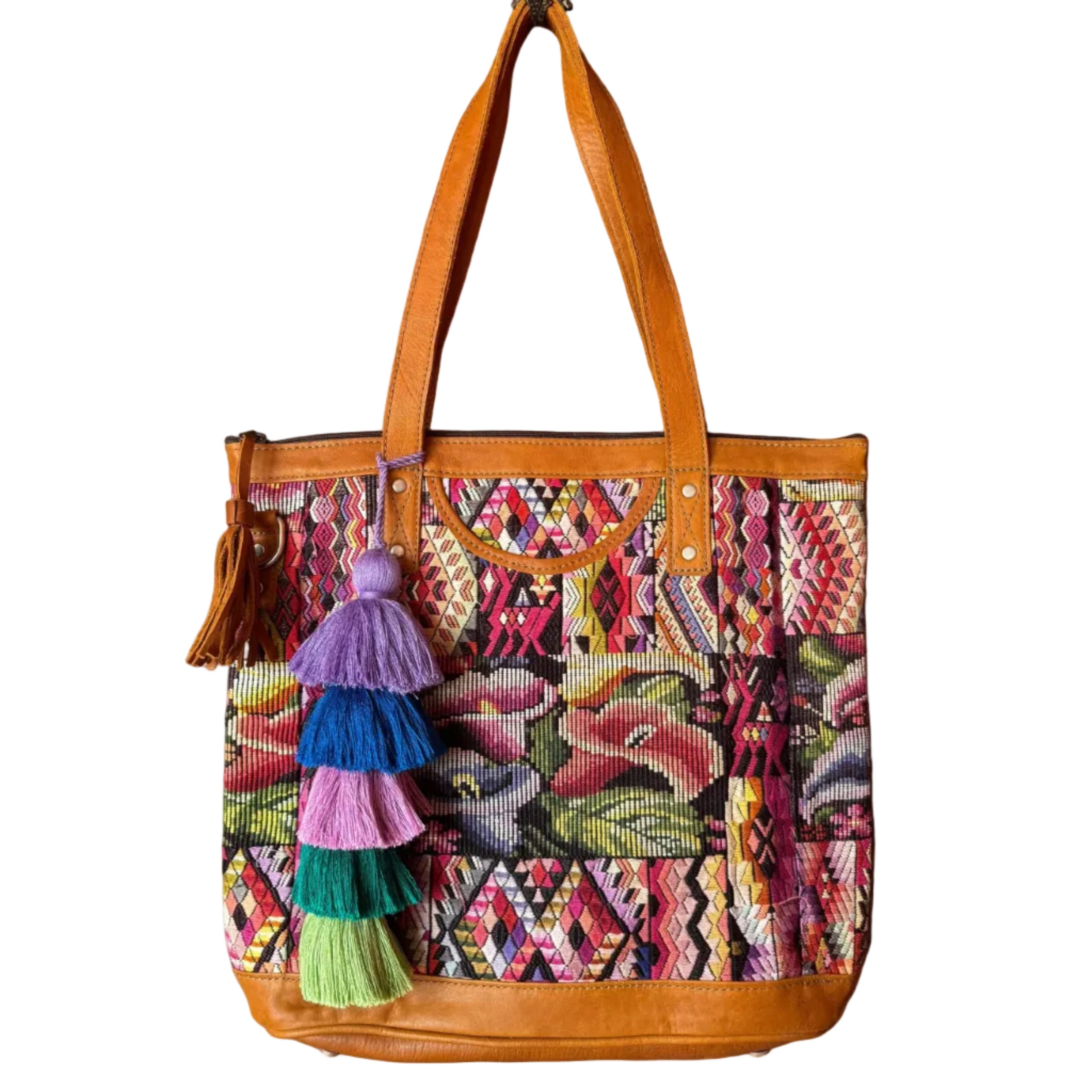 Crafted slowly and intentionally, this tote is a true one-of-a-kind piece handmade in Guatemala by skilled artisans. Each bag blends premium leather with upcycled traditional huipil textiles, giving new life to ancestral fabrics while honoring generations of craftsmanship.