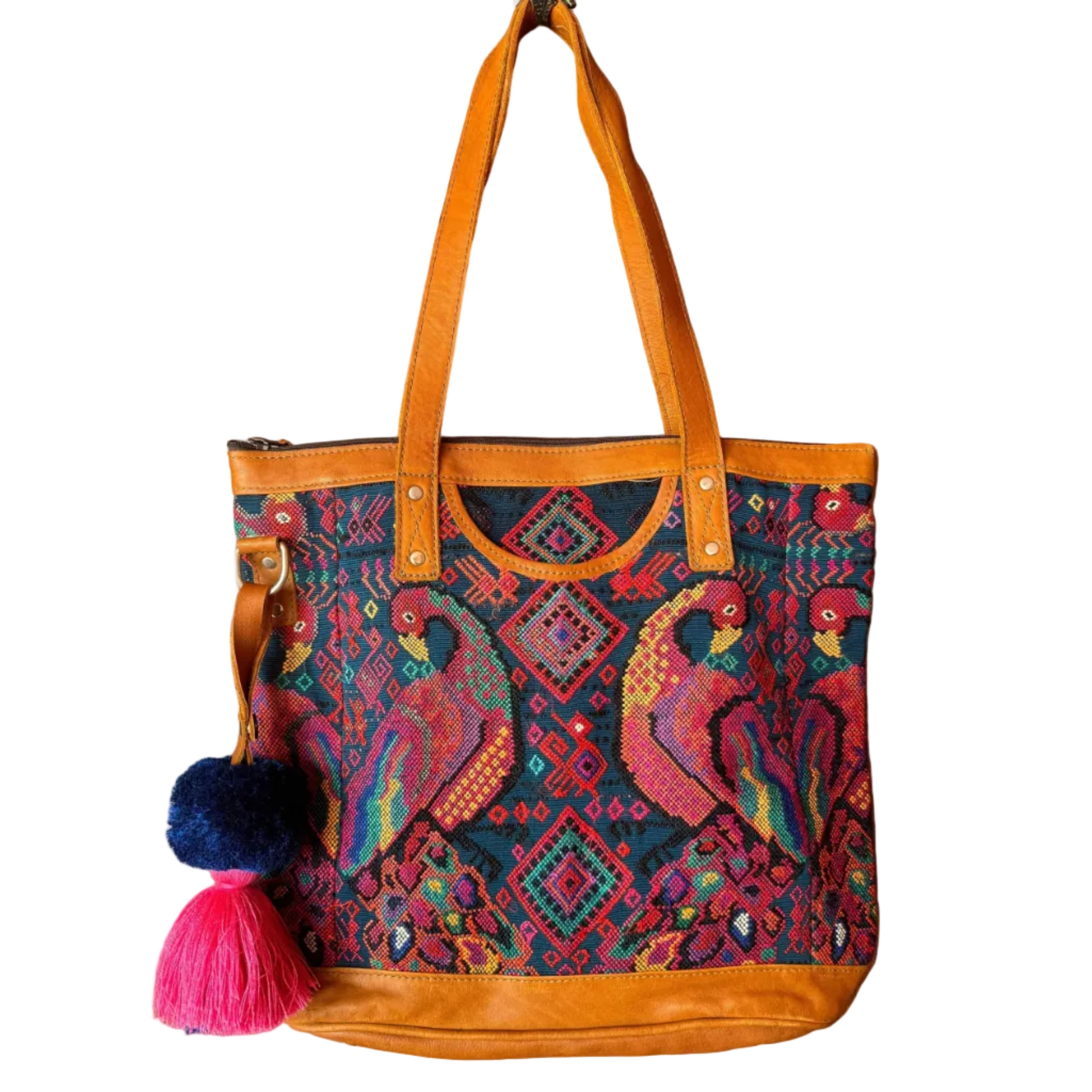 • Premium leather and upcycled huipil textile